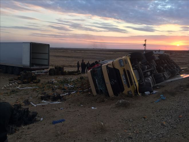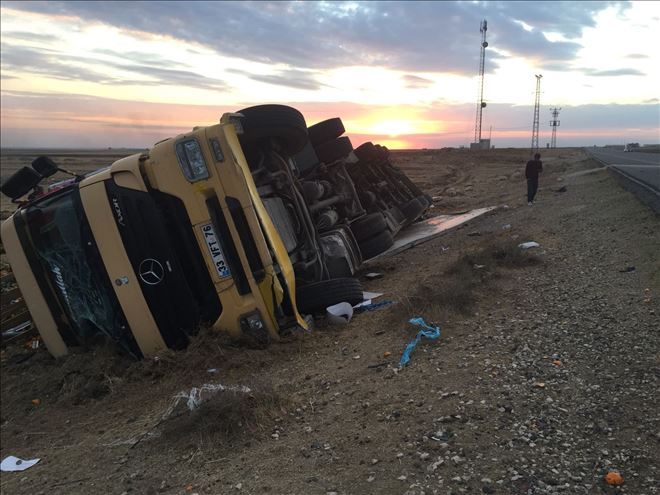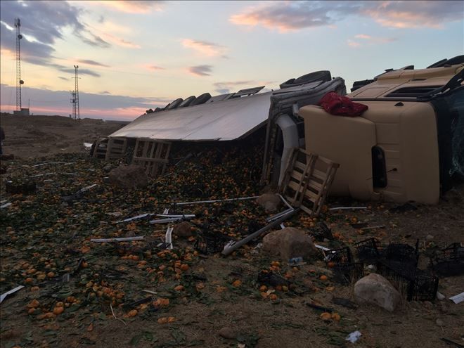 Mardin´in Nusaybin ilçesinde mandalina yüklü kamyon devrilmesi sonucu sürücü yaralandı.