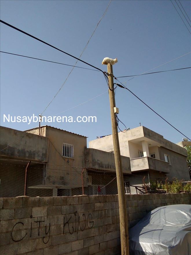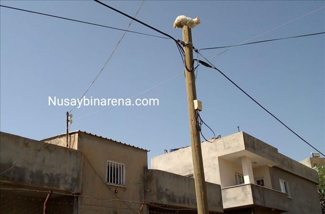 Mardin´in Nusaybin ilçesinde, köpeklerin kovaladığı kedi soluğu direk başında bularak aşağı inemedi.