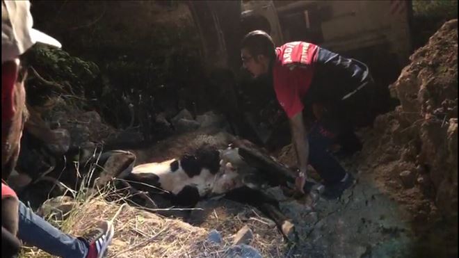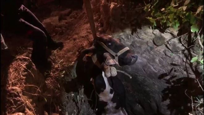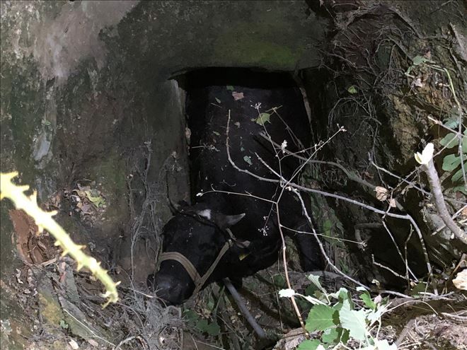 MARDİN´in Nusaybin İlçesi´nde ineğin düştüğü 6 metrelik kuyuda 4 saat mahsur kalan ineği itfaiye ekipleri kurtardı.