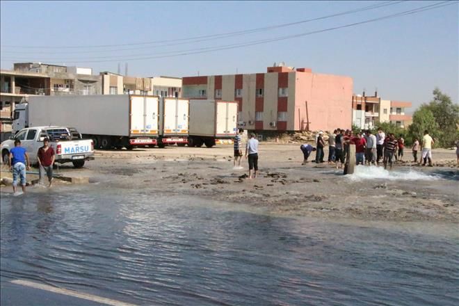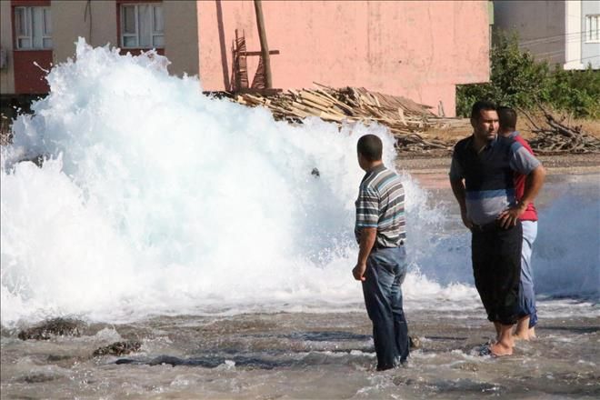 Mardin´in Nusaybin ilçesi´nde Mardin ili ve Kızıltepe ilçesine giden su borusu patladı.