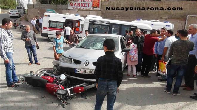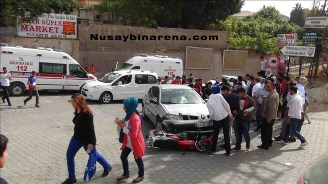 Kaza, Nusaybin Abdulkadir paşa mahallesi çağ çağ cadde üzeri altgeçit mevki eski hastane kavşağında meydana geldi. Çarşı merkezinden, eski hastane yoluna dönen Abdulhalim Erkal yönetimindeki 47 NL 906 plakalı otomobil ile Otogar yönünden, Çarşı merkezine giden sürücüsü ve plakası belirlenmeyen motosiklet ile çapıştı. Kazada motosiklet üzerinde bulunan Halit Akkurt ve Hacı Demir yaralandı. Yaralılar, 112 acil servis ambulanslarıyla Nusaybin devlet hastanesi acil servisine kaldırıldı. Burada tedavi altına alındı.Kazayla ilgili polis ekipleri soruşturma başlattı.-Haber-Ahmet Akkuş