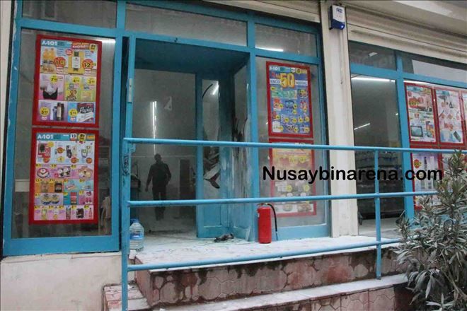 Mardin´in Nusaybin ilçesinde müşteri dolu bir markete molotofkokteyli saldırı düzenlendi. Saldırıda görevliler yangını hemen yangın söndürme tüpleriyle söndürdü.