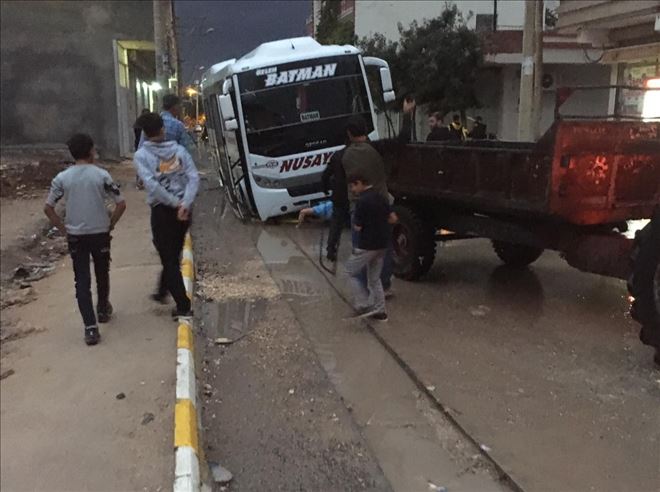 Nusaybin´de otobüs çukura düştü