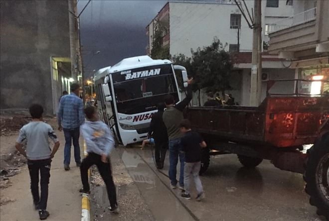 Nusaybin Abdulkadirpaşa Mahallesi Umut Sokak üzerinde, üç ay önce elektrik firması kabloların yer altına konulması için açtığı çukur üzerini toprakla kapatıldı. Üzeri asfaltlanmayan çukur, yağmur suların girmesiyle toprak çamura dönüştü. Sürücüsü ve plakası öğrenilmeyen otobüs yoldan geçerken çukura düştü. Çukurdaki otobüsü önce traktörle çıkarılmaya çalışıldı ancak başarılı olmayınca vinç yardımıyla düştüğü çukurdan çıkarıldı. Otobüste maddi hasar meydana geldiği öğrenildi. Mahalle sakinleri üç aydır, yazın bu çukurun toz çilesini çekiyorduk, kış geldi çamur çilesini çekmek zorunda kalacağız. Yetkililerden biran önce bu yolun asfaltlanmasını istiyoruz.´´