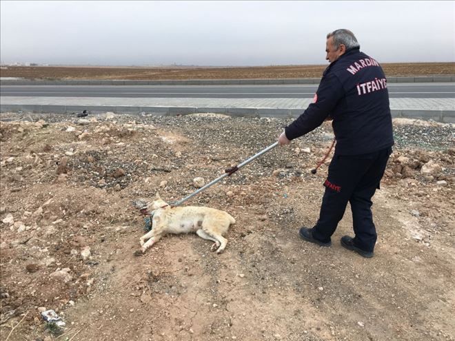 Mardin´in Nusaybin ilçesinde bir otomobilin çarptığı köpek yaralandı. Yaralı köpeğe itfaiye ekipleri ilk müdahaleyi yaptı. Mardin hayvan barınağına götürüldü.