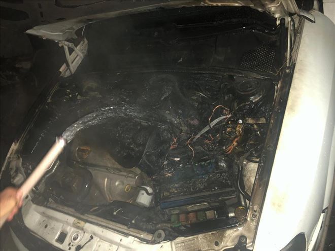 Alınan bilgilere göre, Nusaybin 8 Mart Mahallesi Mardin yolu üzeri Aydınlar Apartmanı araç parkına otomobilini viteste park eden Serdar Aslan´â ayıt 38 HY 576 plakalı otomobil bilinmeyen nedenlerden motor kısmı yanarak ve kendi kendine çalışarak hareket edip 10 metre ilerledikten sonra parkın duvarına çarparak durabildi. Çevredeki vatandaşlar, otomobilden çıkan alevleri görünce Mardin Büyükşehir Belediyesine bağlı Nusaybin İtfaiye ekiplerine haber verdi. Haber, verilmesi üzerine yangın bölgesine giden itfaiye ekipleri kısa sürede yangın söndürüldü. Ekiplerin kısa sürede müdahalesiyle otomobil tamamen yanmaktan kurtarıldı. Otomobilinin motor kısmından çıkan yangın elektrik kontağı olabileceği tahmin ediliyor. Olayla ilgili polis soruşturma başlattı.
