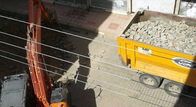 Mardin´in Nusaybin İlçesinde sokağa çıkma yasağının 130. güne girdiği kentte ana caddelerdeki parke taşları kaldırılmaya başlandı.
