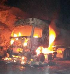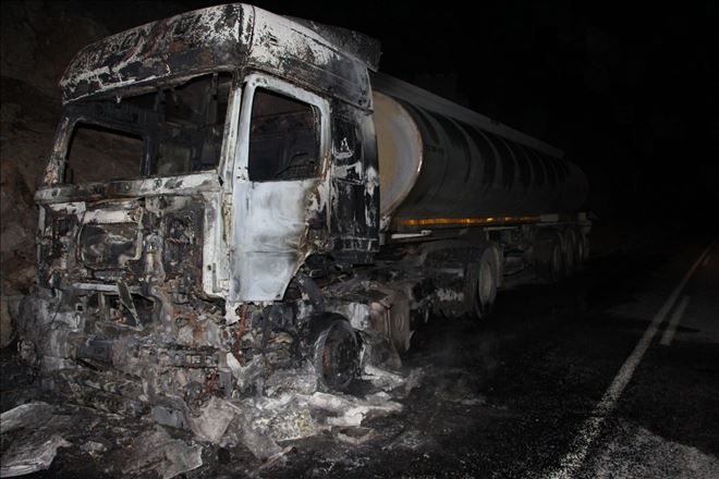Nusaybin ilçesi ile Midyat arasındaki subaşı yolunda PKK´liler, yol keserek kimlik kontrolünden sonra 1 kamyon ve 1 TIR´ı yakıp olay yerinden ayrıldı.
