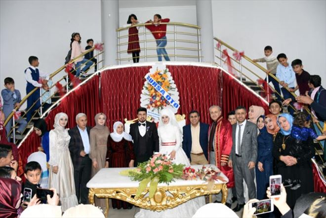 Nusaybin Şehr-i med Düğün Salonunda yapılan düğün, gelin ve damadın salona gelmesiyle başladı.