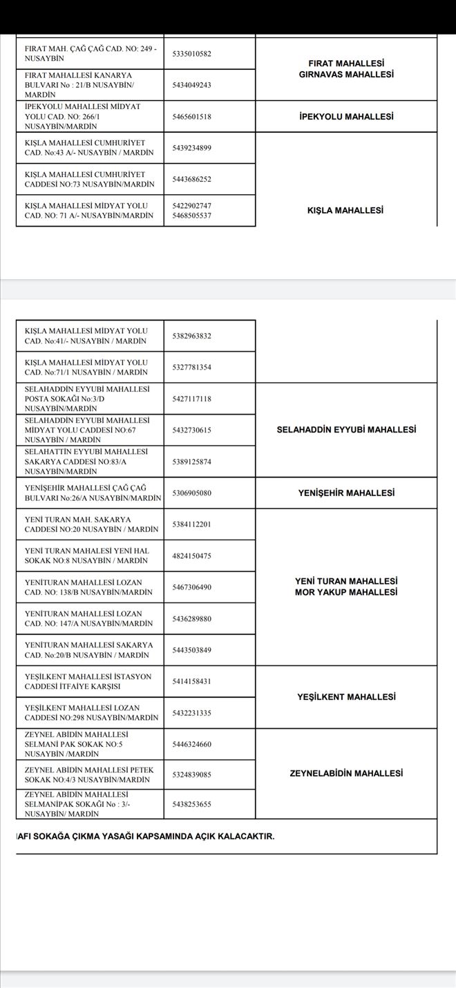 Nusaybin´de sokağa çıkma yasağı´nda açık olacak olan iş yerleri listesi