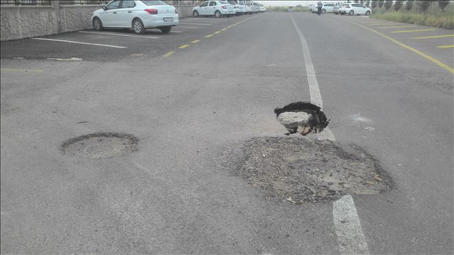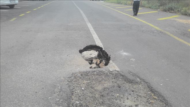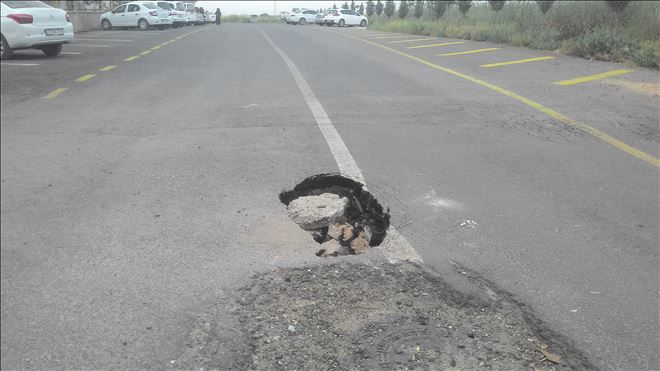 Mardin´in Nusaybin ilçesi sınır boyundaki yolun ortasında oluşan göçük tehlike saçıyor.