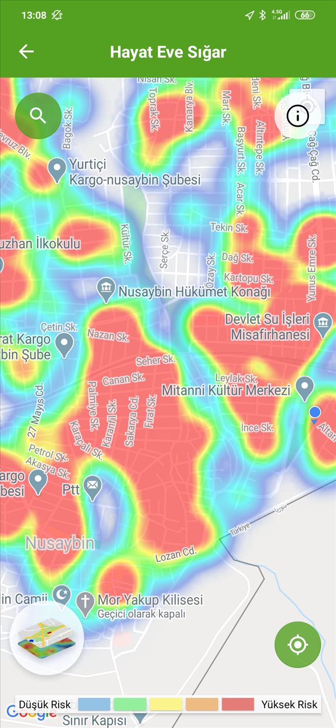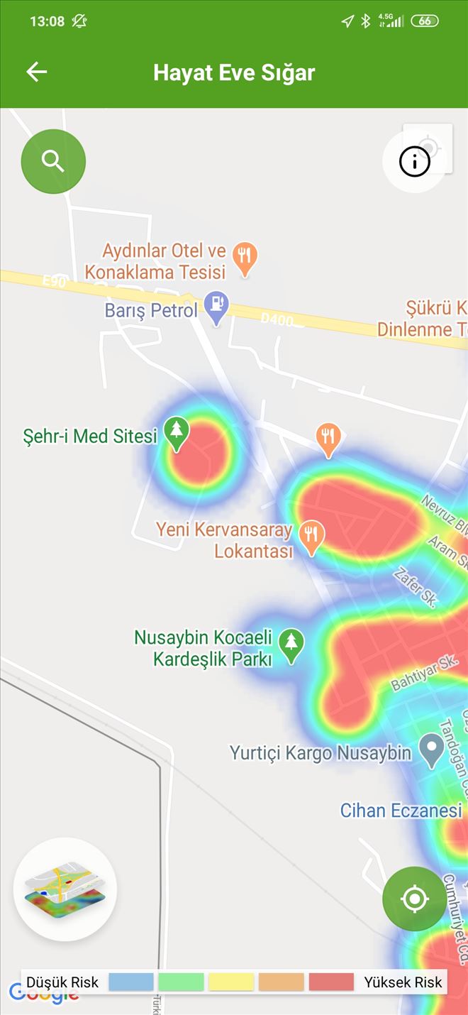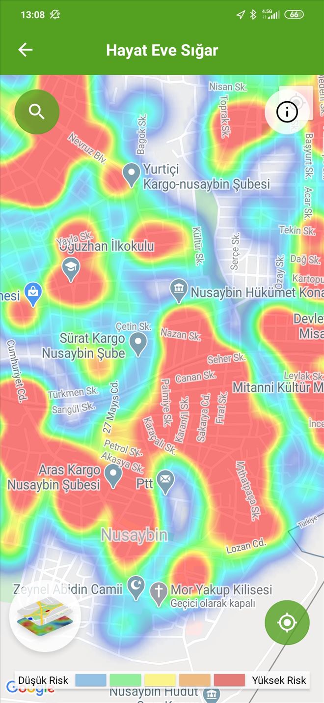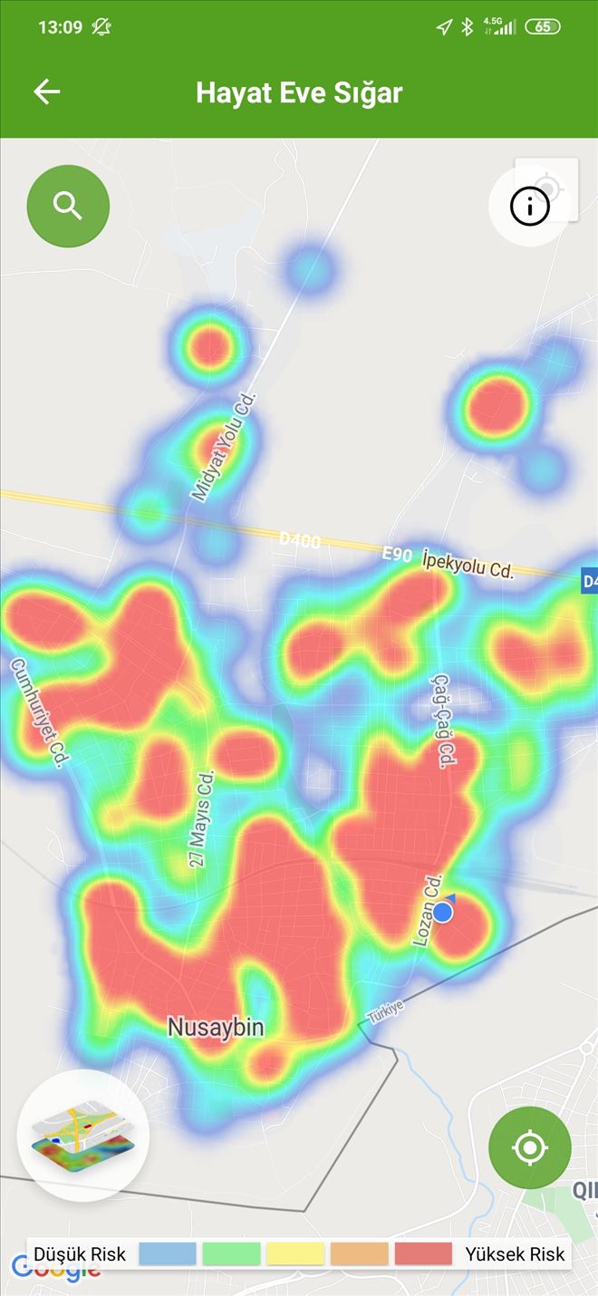 Lütfen, bu virüs salgını hafife almayalım, İlçede vaka artışı ?Hayat Eve Sığar? uygulamasının haritası içinde kırmızı bölgeler pozitif hasta olduğu gösteriyor.