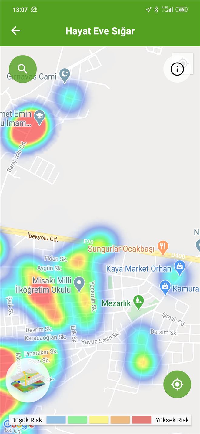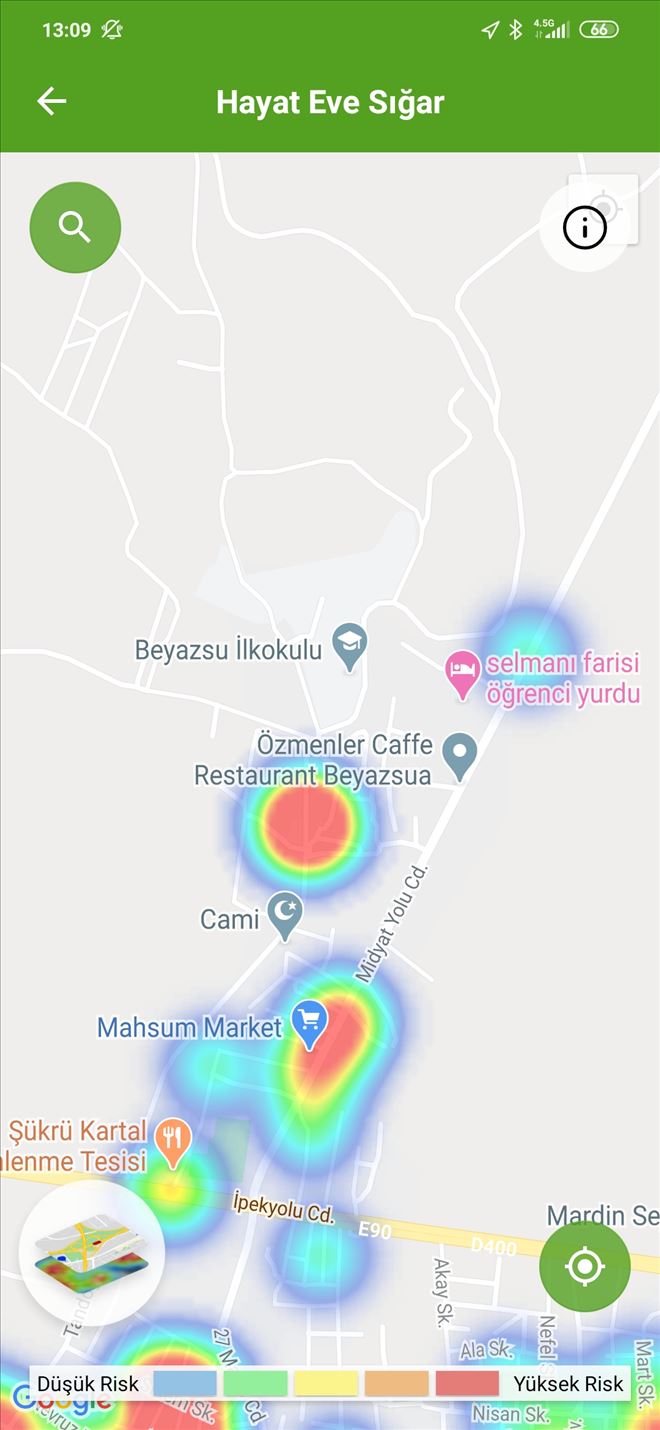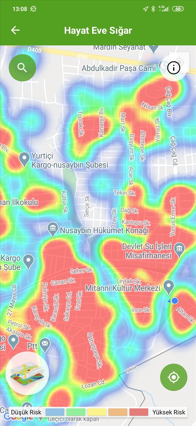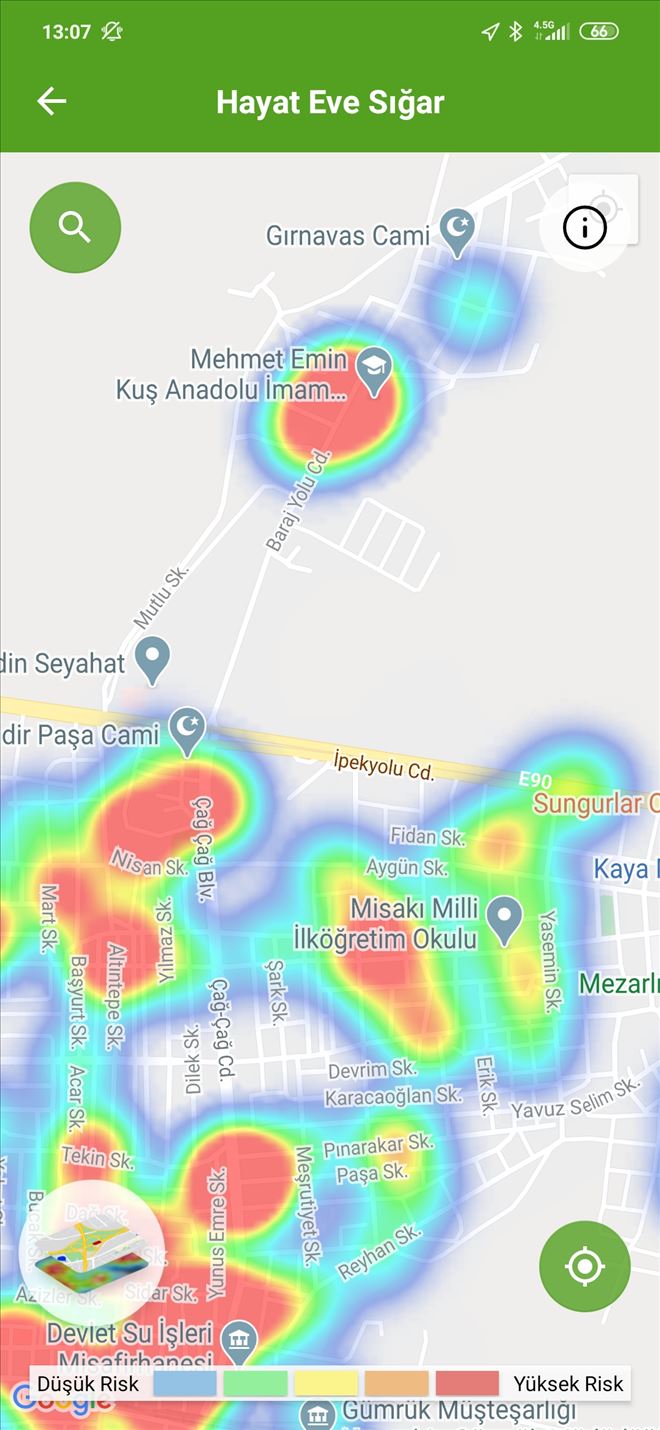 Lütfen, bu virüs salgını hafife almayalım, İlçede vaka artışı ?Hayat Eve Sığar? uygulamasının haritası içinde kırmızı bölgeler pozitif hasta olduğu gösteriyor.
