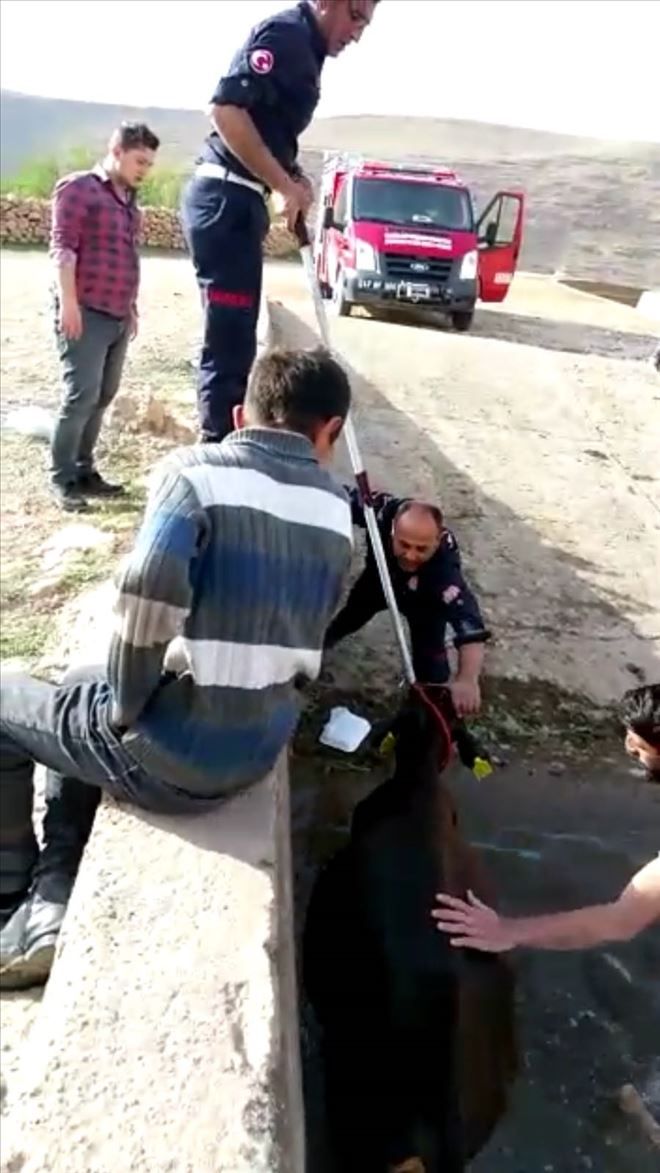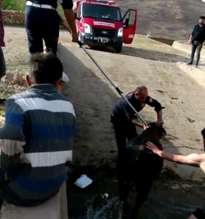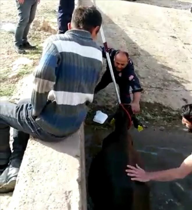 Mardin´in Nusaybin ilçesinde 4 metre derindeki su kanalına düşen inek 3 saat mahsur kaldı. İtfaiye ekiplerin çabaları sayesinde inek su kanalından kurtarıldı.