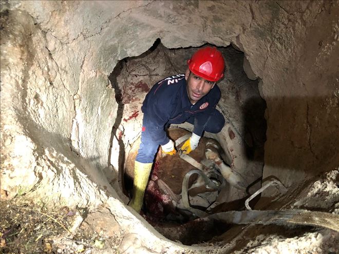 Kuyu ağzının dar olması nedeniyle ineğin baş ve gövde kısmından yaralandığı görülürken, canlı olarak kuyudan çıkarılan inek sahiplerine teslim edildi.