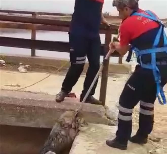 Nusaybin´de sulama kanalına düşen Kurdu kurtarmak için çoban haber verdi