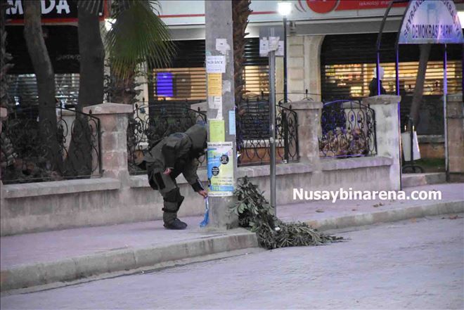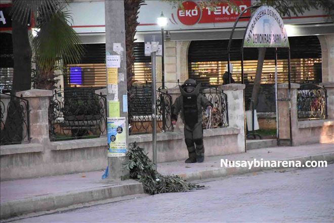 Nusaybin Selahaddin Eyyubi Mahallesi Lozan Caddesi Demokrasi Parkı önündeki minibüs durağında vatandaşlar tarafından şüpheli çanta görüldü. Haber verilmesi üzerine bölgeye gelen polis ekipleri caddeyi yaya ve araç trafiğine kapattı. Patlayıcı uzmanı tarafından şüpheli çanta fünyeyle imha edildi. Çantada eski elbise olduğu görüldü.