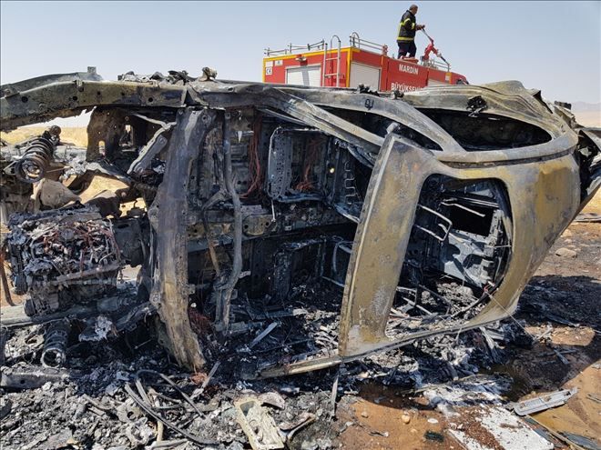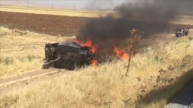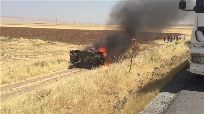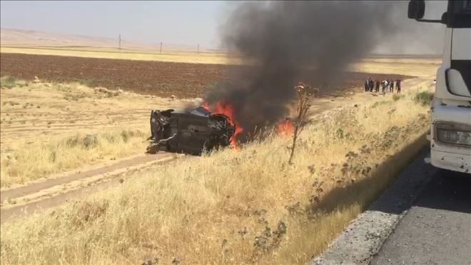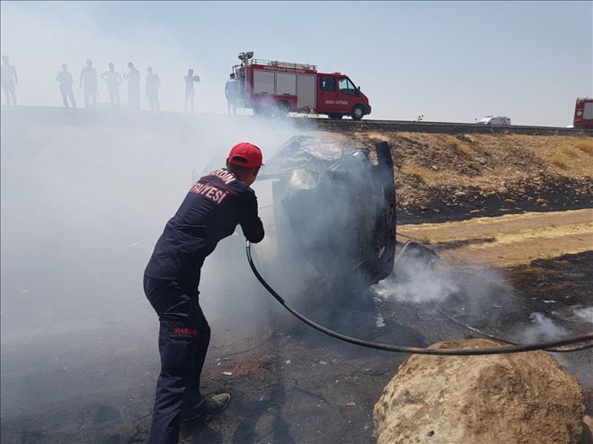 Nusaybin´de takla atan araç yandı, 1 ölü,1 yaralı