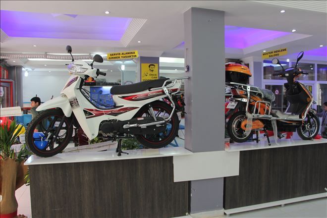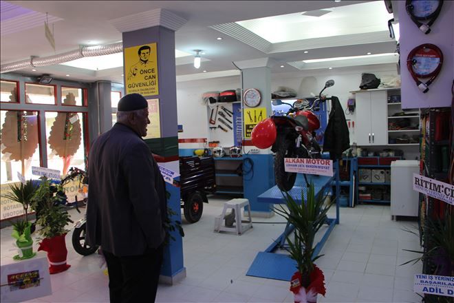 Alkan, açılışa katılan misafirlere motosiklet ve çapa motorları hakında bilgi verdi.