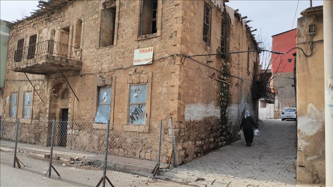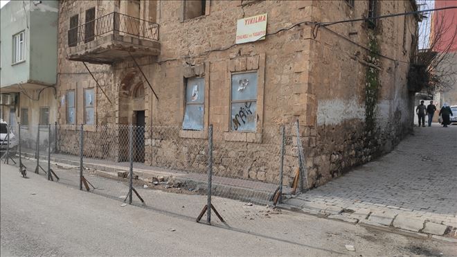 Nusaybin ilçesi, Hamam Sokakta bulunan ve tarihi konut olduğu belirtilen yapıdan taşların düşmesi üzerine belediye ekipleri yapının etrafını tel örgüyle kapattı.