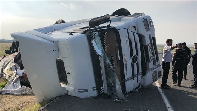 Nusaybin´de Tır devrildi, 1 kişi yaralandı