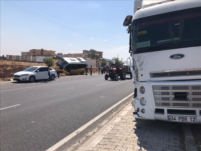 Sürücülerinin ismi öğrenilemeyen 34 PBR 12 plakalı tır ile 47 H 0466 plakalı şehir içi minibüsü çarpışması sonucu 1 kişi yaralandı.