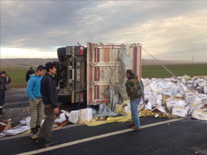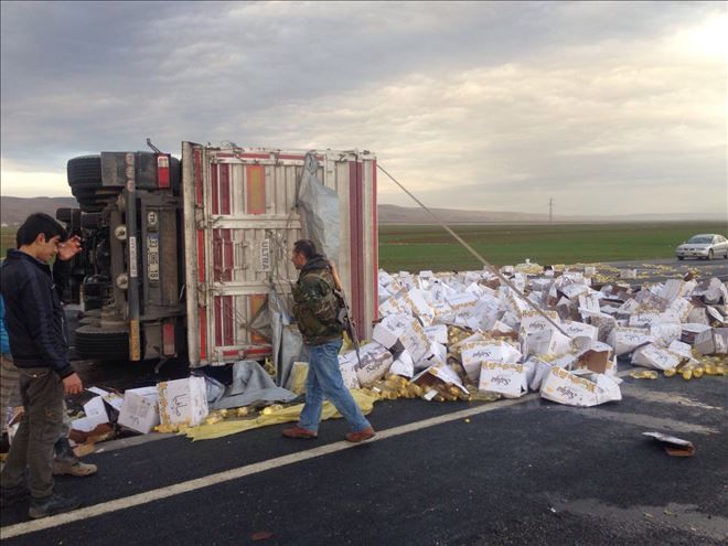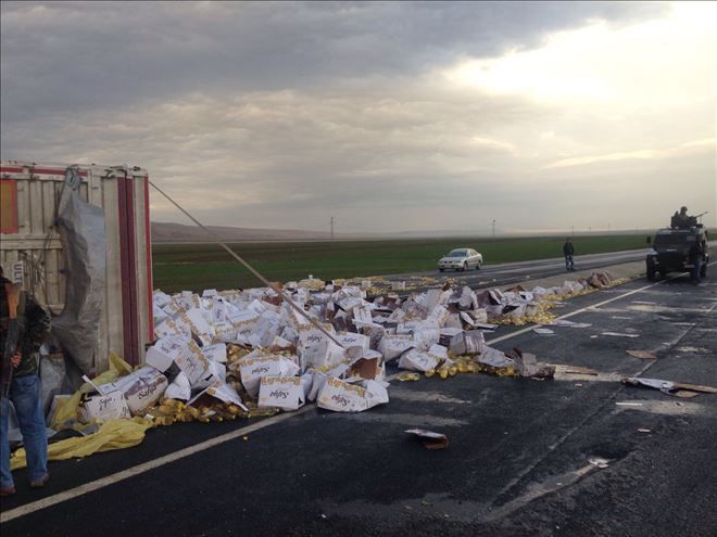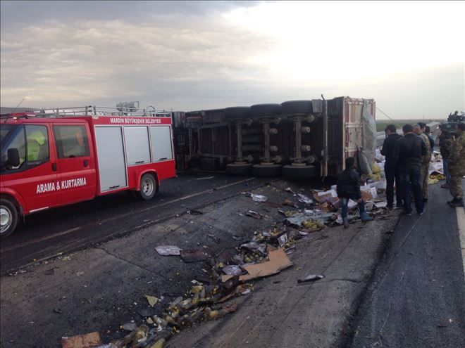 Kaza Nusaybin´e bağlı Söğütlü köyü mevkileri ipek yolunda meydana geldi. Nusaybin-Cizre istikametine giden, sürücüsünün ismi belirlenmeyen 33 DHG 18 plakalı, mutfak yağı yüklü tır çift şeritli olan uluslararası ipek yolun ortasına yuvarlandı. Kazada hafif yaralanan sürücü olay yerine gelen 112 acil servis ambulansında tedavi edildi. Mutfak yağı yüklü tır da maddi hasar meydana gelince yağların bir bölümü kullanılamaz hale geldi. Kazayla ilgili Jandarma ekipleri soruşturma başlattı.-Haber-Ahmet Akkuş