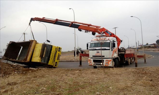 Mardin´in Nusaybin ilçesi´nde hafriyat kamyonun devrilmesi sonucu sürücü yaralandı.