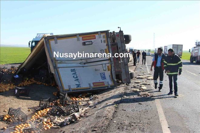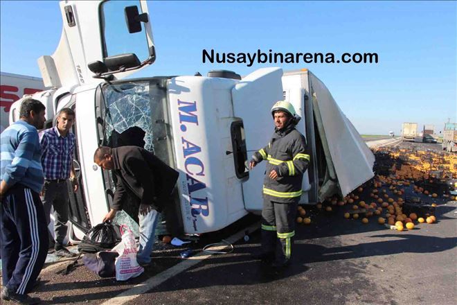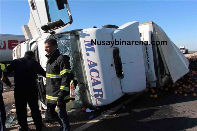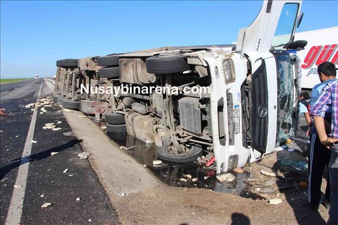 Mardin´in Nusaybin İlçesi´nde meydana gelen trafik kazasında devrilen TIR´da 2 kişi yaralandı.