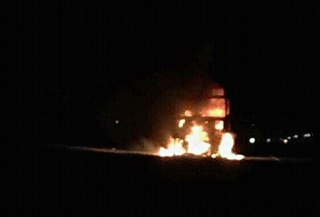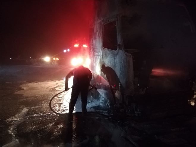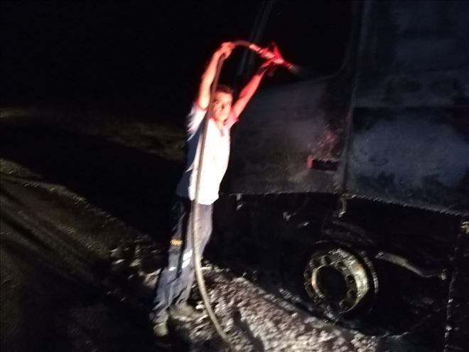 Mardin´in Nusaybin ilçesinde alev alan, Tır´dan geriye demir iskeleti kaldı.