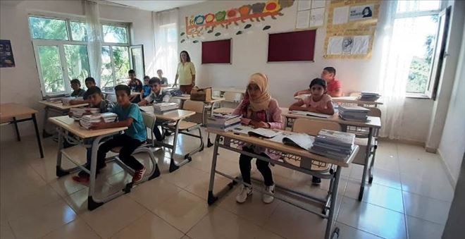 Öğrenciler yeni aldıkları kitaplarıyla ilk derslerini işledi. Nusaybin´de okul açıldığı ilk dersten itibaren tüm okullarda ders işlendiği gözlendi.