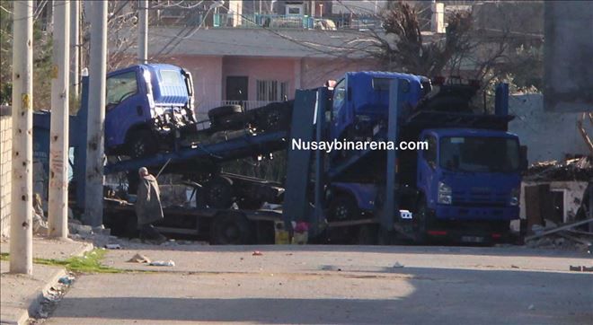 Mardin´in Nusaybin İlçesi´nde YPS üyeleri tarafından sıfır araç yüklü TIR´ın kontak anahtarına el koyduktan sonra sokağa çapraz park edilerek barikat yapıldığı gözlendi.
