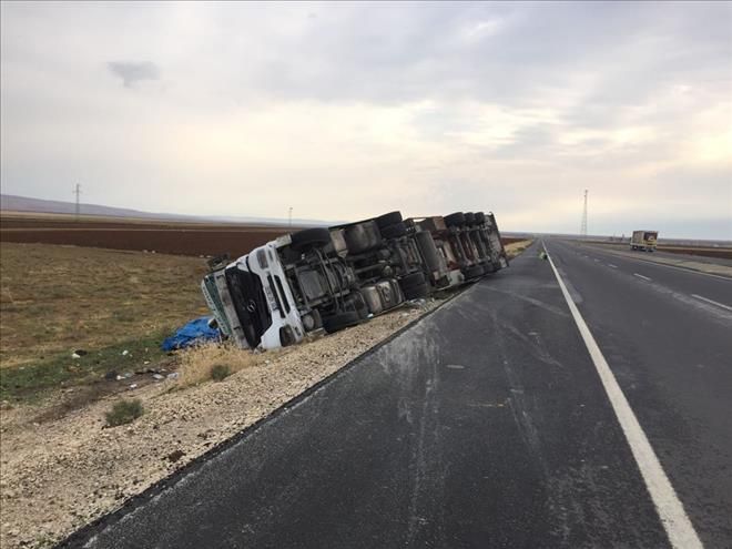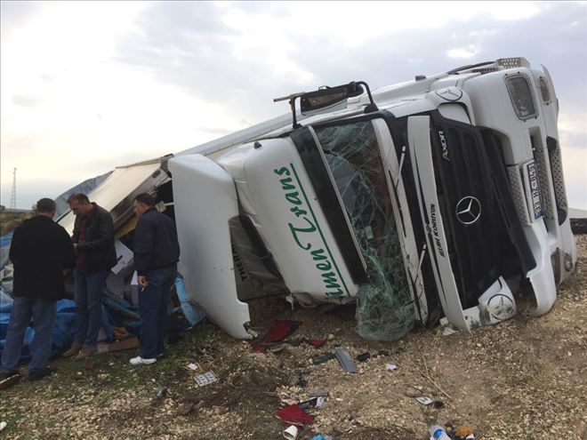 Nusaybin ilçesi ipek yolunda yumurta yüklü tır devrildi, sürücü yaralandı.