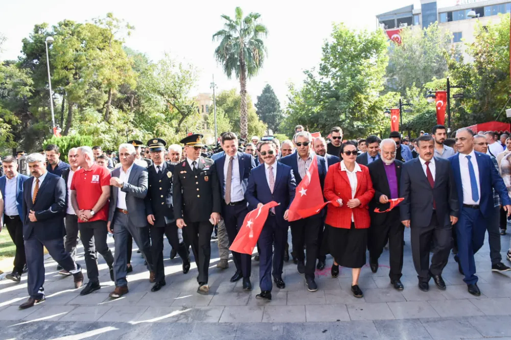 Ellerindeki Türk Bayrakları, taşıdıkları dev bayrak ve Yüzüncü Yıl Marşıyla yürüyüş yapan kortej, Sakarya Caddesi ve Cumhuriyet Caddesi üzerinden İlçe Merkezinden geçerek Unesco Geçici Kabul Listesi'nde "İnanç Parkı" adıyla Zeynel Abidin Cami ve Külliyesi ile Mor Yakup Kilisesine ulaştı.