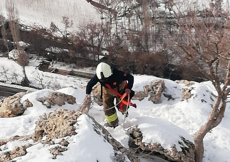 Arama Kurtarma ekipleri, keçilerin mahsur kaldığı kayalık bölgesindeki uçuruma 1 saat 30 dakika dağa tırmanarak, 50 santimlik kar üzerinde 5 kilometre yürüyerek ulaşabildi. Ekipler, uçuruma iple inerek uzun uğraşlardan sonra 2 keçi zarar görmeden kurtararak sahibine teslim etti. Keçilerin sahibi Ağırman, itfaiye ekiplerine teşekkür ederek keçilerini alıp köy yoluna doğru yola çıktı.