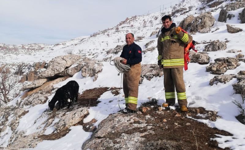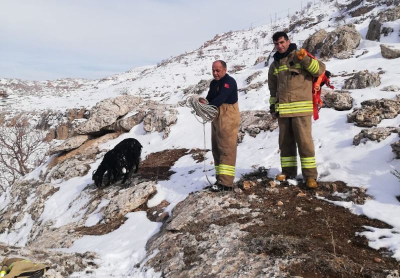 Nusaybin’de 3 gün uçurumda mahsur kalan 2 keçiyi itfaiye ekipleri kurtardı