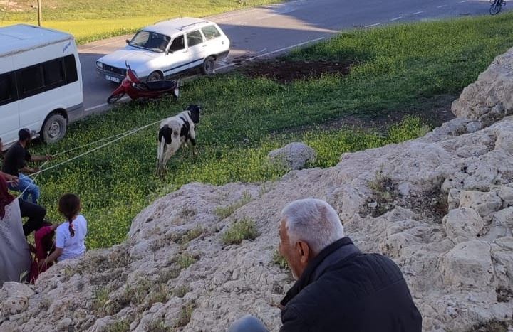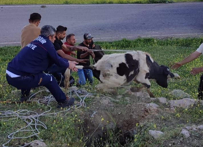 Adıgüzel, Danasını kurtaramayacağını anlayınca yardım için 112 Mardin Büyükşehir Belediyesine bağlı Nusaybin İtfaiye ekiplerine haber verdi.