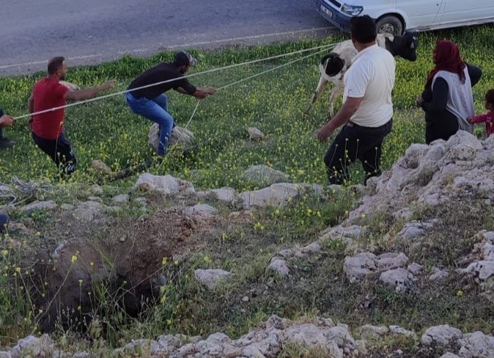 Rıdvan Adıgüzel’e ait dana 4 gün önce köye yakın bir boş su kuyusuna düşerek mahsur kaldı.