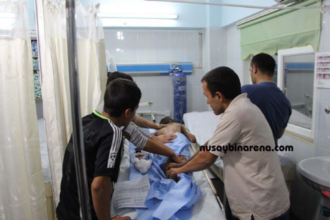 Edinilen bilgilere göre, Nusaybin 27 Mayıs cadde üzeri,demir yolu üst kısmı cami mevkisi saat.22:30 sıralarında 7 yaşındaki M.A,isimli çocuk,20 yaşlarında bir yakın akrabası tarafından sırtına 7 bıçak darbesiyle yaralandığı öne sürüldü.Yaralı çocuğu yerde gören bir sürücü tarafından Nusaybin devlet hastanesi acil servisine kaldırıldı.Burada tedavi altına alındı.Çocuğun hayati tehlikesi olmadığı öğrenildi.Bıçaklı yaralamaya karışıp kaçan 20 yaşlarındaki bir kişiyi yakalamak için polis ekipleri soruşturma başlattı.-Haber-Ahmet Akkuş