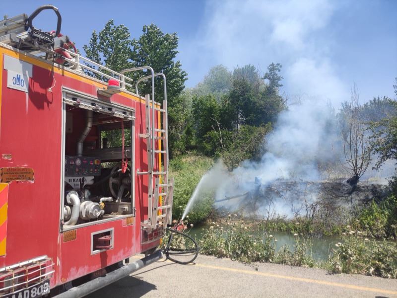 Nusaybin’e bağlı kırsal Bahçebaşı Mahallesi’ndeki bahçelerin bulunduğu bölge ve sulama kanalı kenarında bilinmeyen nedenlerden yangın çıktı.
