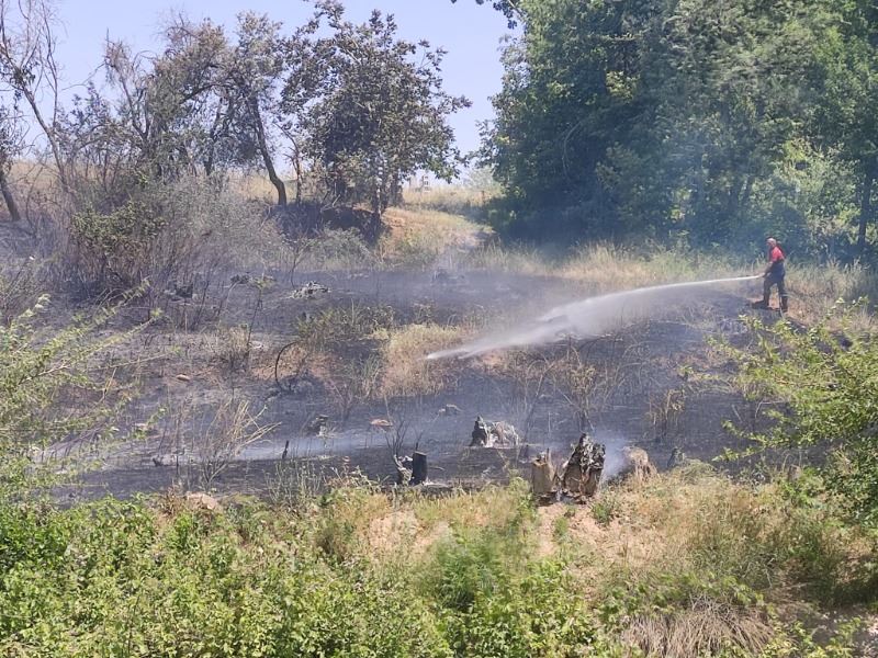 Ahmet AKKUŞ/-MARDİN’in Nusaybin ilçesi bahçelerin olduğu bölgede çıkan yangın itfaiye ekiplerinin büyük çabaları sayesinde büyümeden ve ağaçlar zarar görmeden söndürüldü.