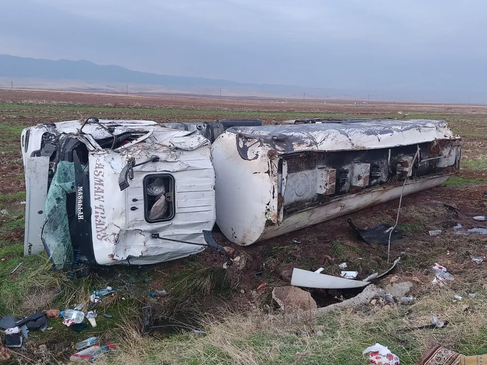 Nusaybin’de akaryakıt yüklü tanker devrildi: 1 yaralı