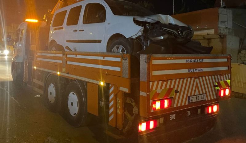 Ahmet AKKUŞ/Mardin’in Nusaybin ilçesi demiryolu mevkiinde sürücüsünün kontrolünden çıkan hafif ticari araç aydınlatma direğine çarparak hasar gördü.