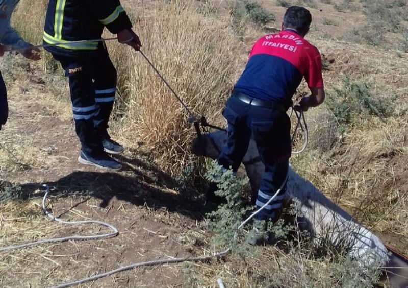 İsmi öğrenilmeyen, eşek sahibi eşeğinin kurtarılması için Mardin Büyükşehir Belediyesine bağlı Nusaybin İtfaiye ekiplerine haber verildi.