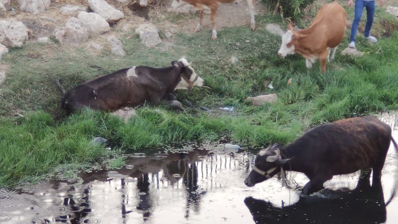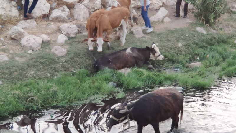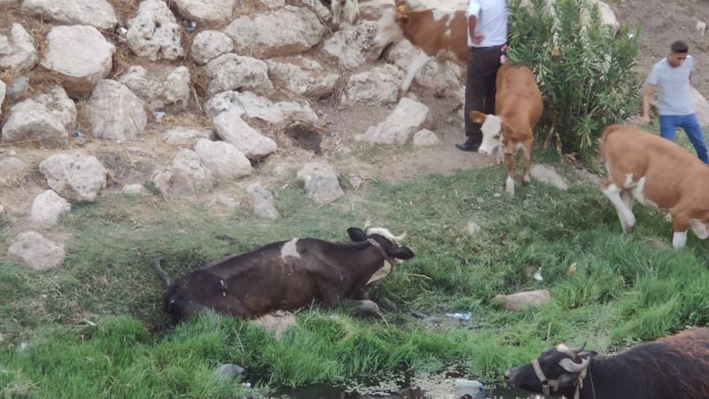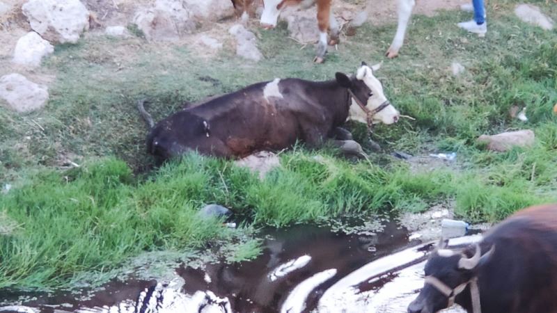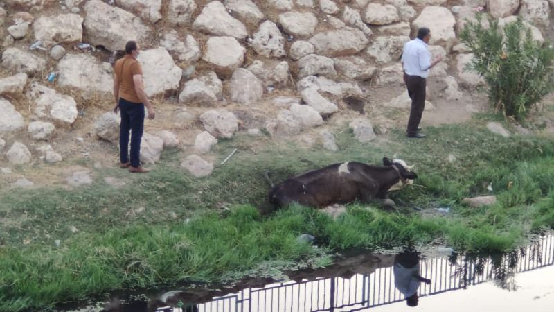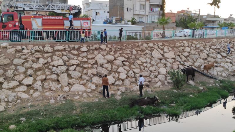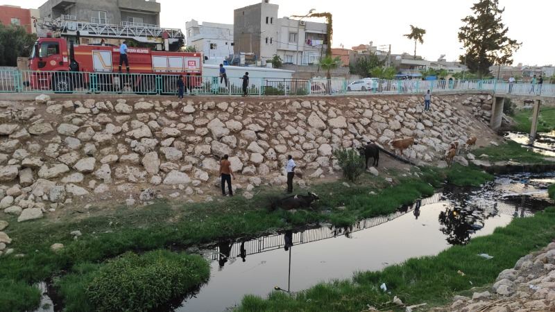 Nusaybin Yeni Turan Mahallesi çağ çağ deresine kenarına giren bir sürü inek otlarken ineklerden biri bataklığa saplanarak mahsur kaldı.
