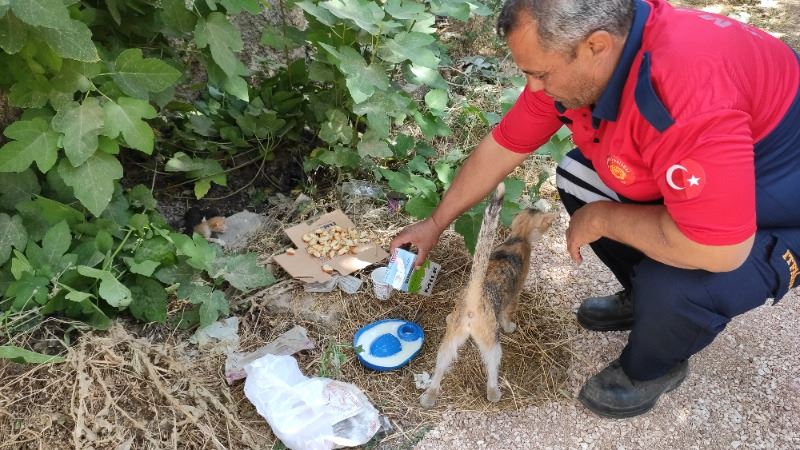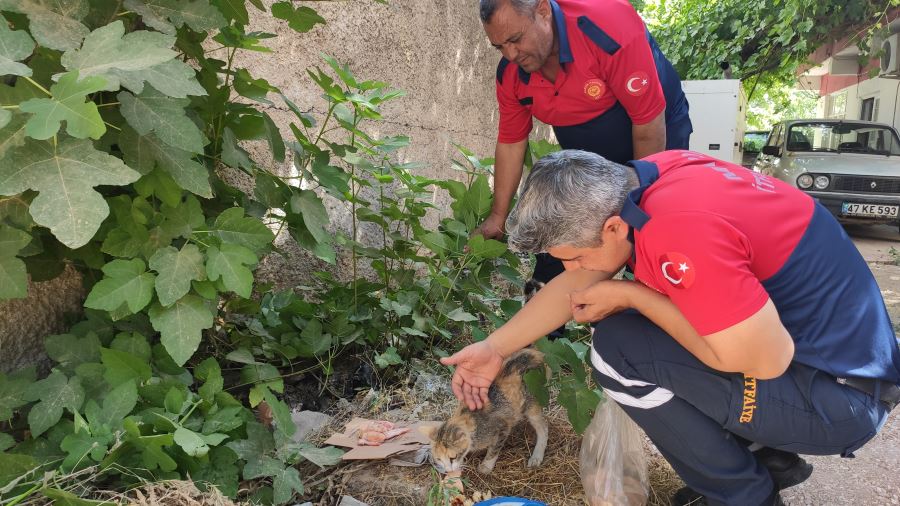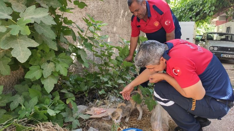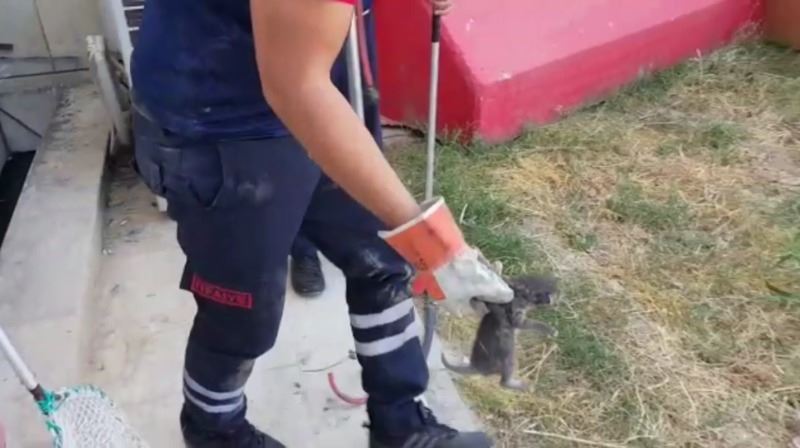 bölgeye Arama ve Kurtarma ekibi sevk edildi. Ekipler, özel bir aparatla kedi ve 4 yavrusunu kurtardı. Arama ve Kurtarma ekipleri kurtardıkları kedi ve yavrularıa sahip çıkarak yanlarına alıp, İtfaiye binasına götürülerek süt ve et verip beslemeye başladı.