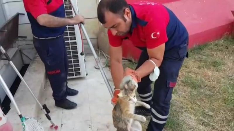 Ahmet AKKUŞ/Mardin’in Nusaybin ilçesinde bir binanın pencere kenarındaki 1 metre 50 santim boşlukta günlerce mahsur kalan kedi ve 4 yavrusu İtfaiye ekipleri tarafından kurtarılarak sahip çıktı.