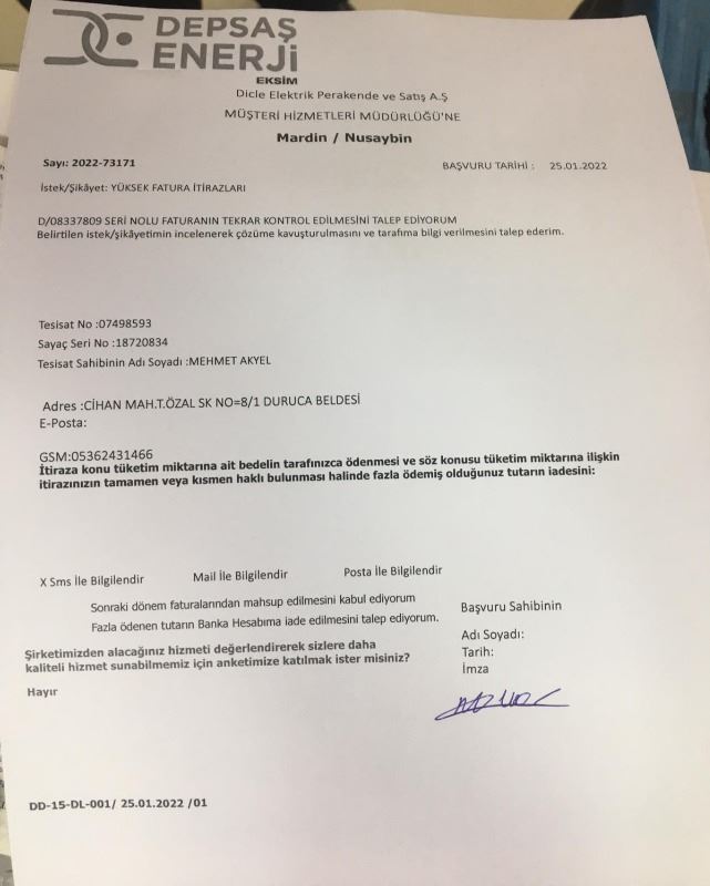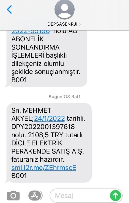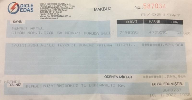 Dört gün geçti halen kapatmamışlardı, Dedaş'a gittim, halen o abonemizi kapatmadınız dedik, o ikazımız üzerine hemen kapandı.
