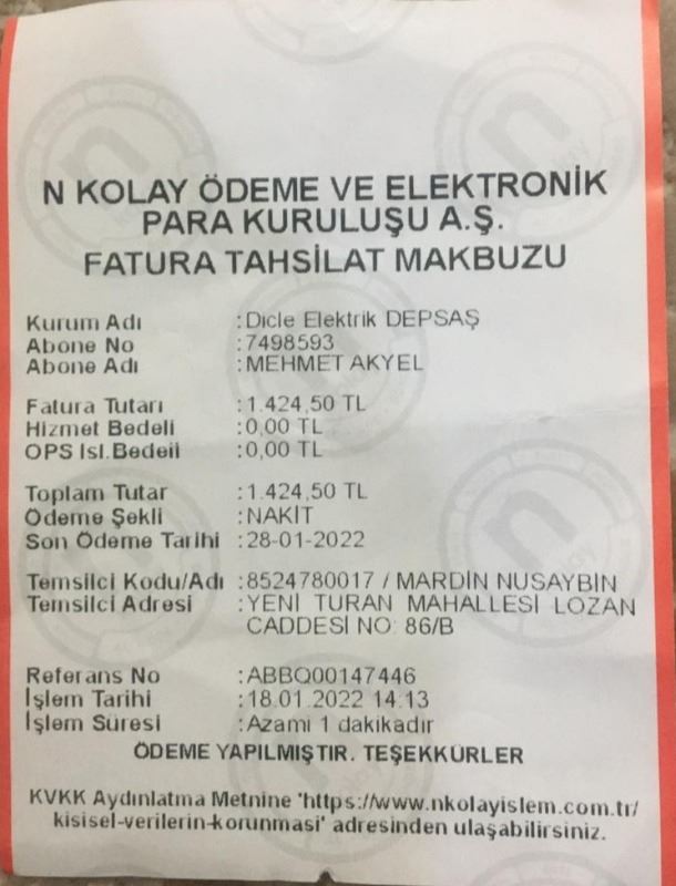 Bir hafta geçti bir fatura daha geldi, Bin 425 lira, o dairemde de kimse oturmuyor, sadece iki buzdolabımız var. Böyle kabarık faturalar gelince de o abonemizin kapatması için dilekçe verdik. Bu faturalarında ödemek zorunda kaldım.