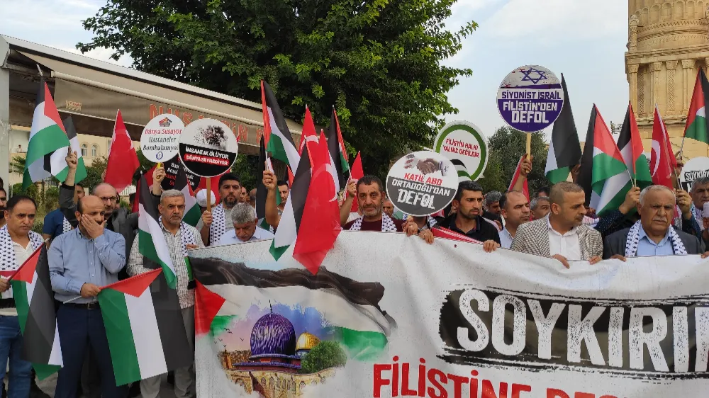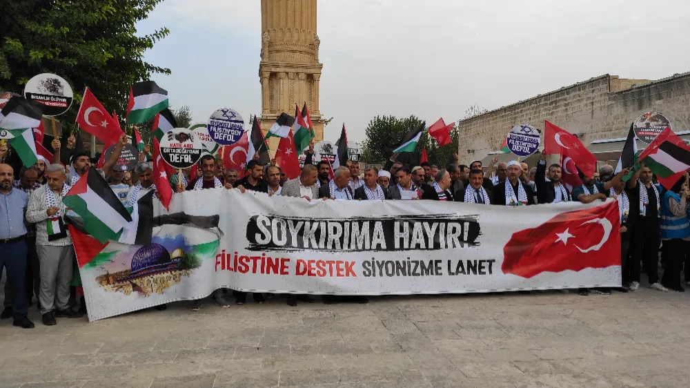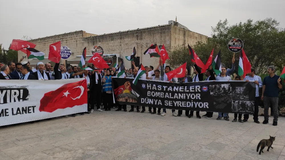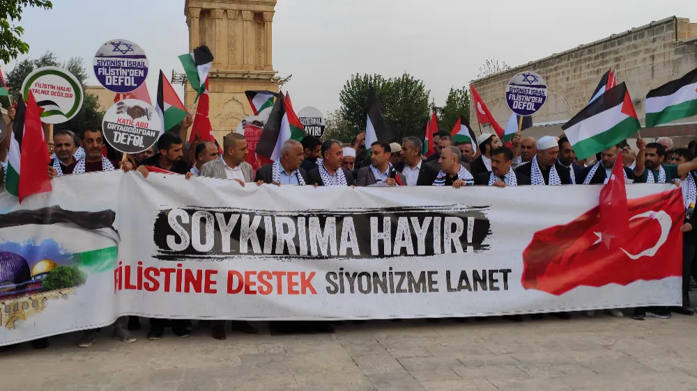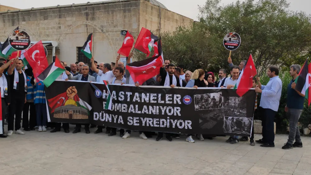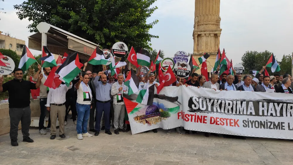 İsrail’in Filistin’e yönelik saldırıları nedeniyle Mardin’in Nusaybin ilçesinde Eğitim Bir-Sen tarafından yapılan açıklamayla kınadı.